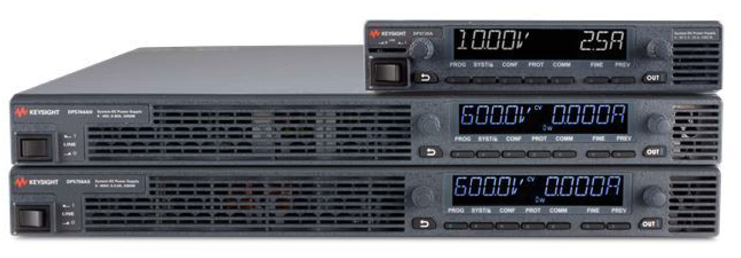 The Keysight DP5700 Series DC power supplies are compact and secure, delivering the right performance in space-constrained lab and production environments. The series includes 40 single-output programmable models, with 1.5 kW units in half-rack width and 3.4 kW units in  full-rack width, both only 1U high. They provide stable output with built-in voltage and current measurements, with operating ranges up to 600 V / 150 A (on the 1.5 kW models) and  600 V / 340 A (on the 3.4 kW models).